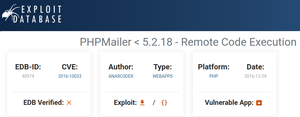 - After finding the versions from any source, for example you have discovered the PHPMailer 5.2.18 from the comment in http or other source. Now, you can go to searchsploit, exploit-db, metasploit, for search exploits or just simply google it like "PHPMailer 5.2.18 exploits".