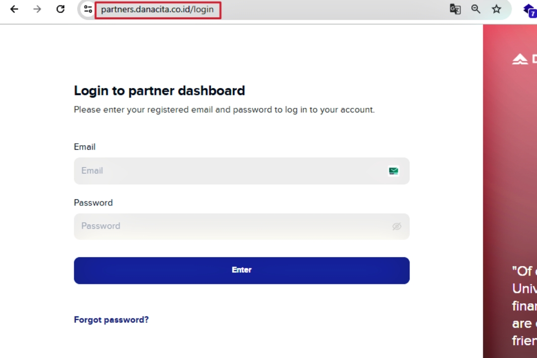 • Login Page: https://partners.danacita.co.id/login
