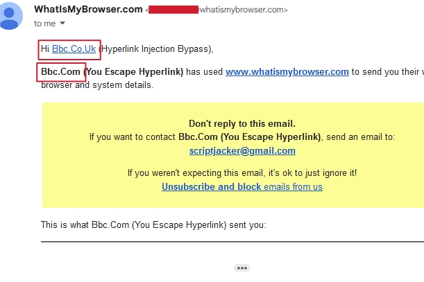 - Now, You guys will think what's this, but YES guys this a small flaw which will allow you to bypass hyperlink protection. As you know that Evil.com and Evil.Com doesn't appear as link in gmail because of websites escaping or protection technique but if we put double period domain bbc.co.uk so it will appear as link in gmail even if website converts it into UPPERCASE like Evil.Co.Uk, EVIL.CO.UK, Evil.co.uk, Evil.Co.uk, etc so also it will appear as hyperlink.