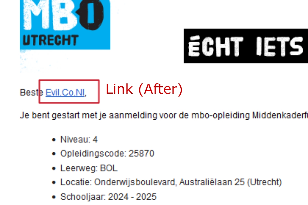 Attackers might try injecting malicious links like "evil.com" into input fields that get reflected back in emails. However, websites employ various protection or escaping techniques to prevent such attempts from succeeding. Like it convert evil.com to the followings listed below so that it appear as text only in email:-