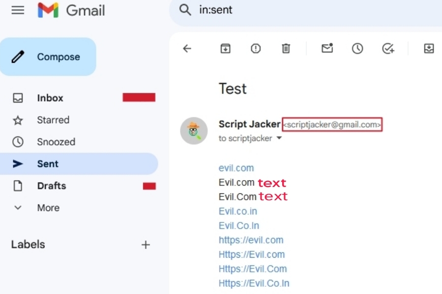 - Gmail depends on case sensitivity thats why it convert evil.com in hyperlink and not convert Evil.com and Evil.Com in link, but you guys now would ask what about Evil.Co.In as its also Uppercase so it shouldn't be converted into hyperlink but it get converted because maybe Gmail only put proper validation checks upto one period domain like evil.com and not evil.co.in so, In todays article we are going to exploit this flaw or configuration done my gmail.