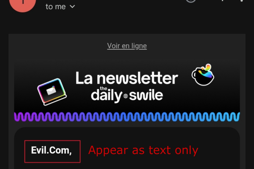 - evil. com There is space after period/dot (.) o that it don't appear as link.