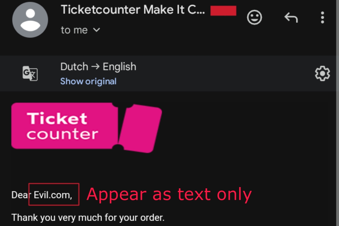 - Note You guys have must seen this kind of behavior that it don't show evil.com as hyperlink when you are trying to find hyperlink injection because the website email client like no-reply@website.com also treat evil.com as text. Proton Mail also show quite same behavior as TempMail.